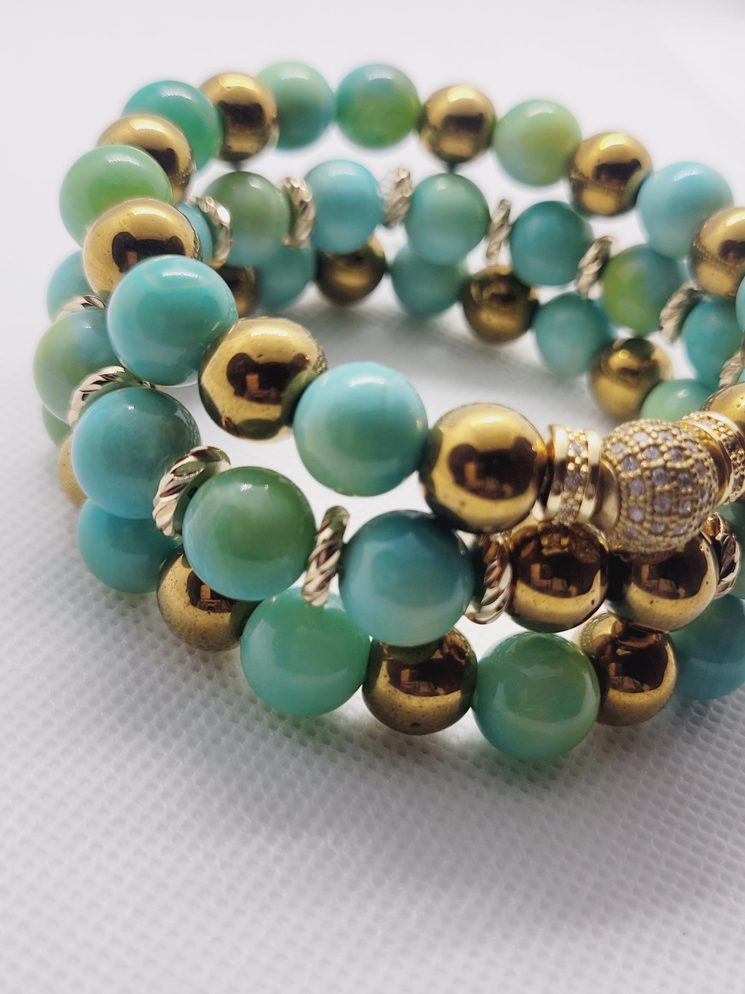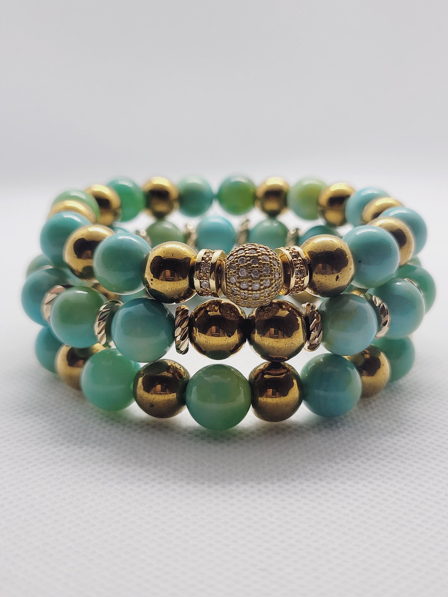 BEAUTIFUL 10MM AGATE MIXED WITH SMOOTH ANTIQUE GOLD HEMATITE AND CUBIC ZIRCONIA