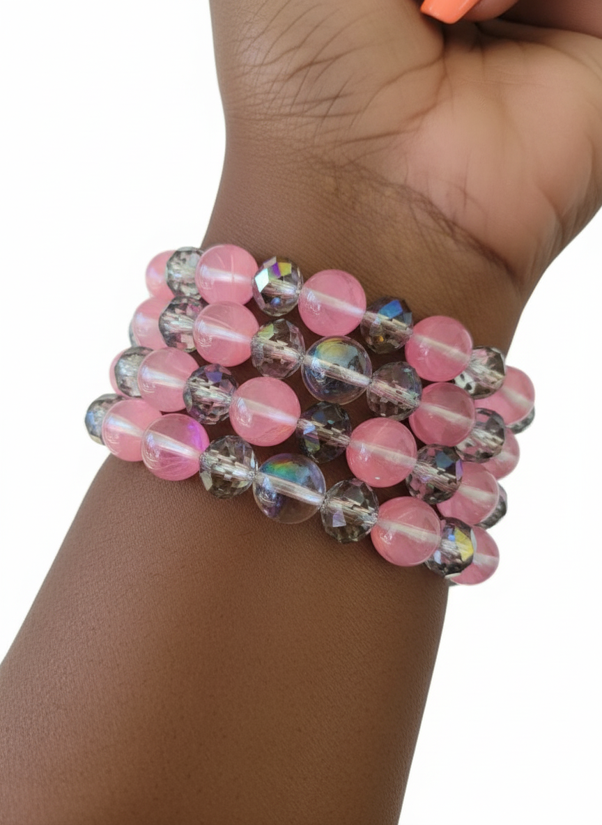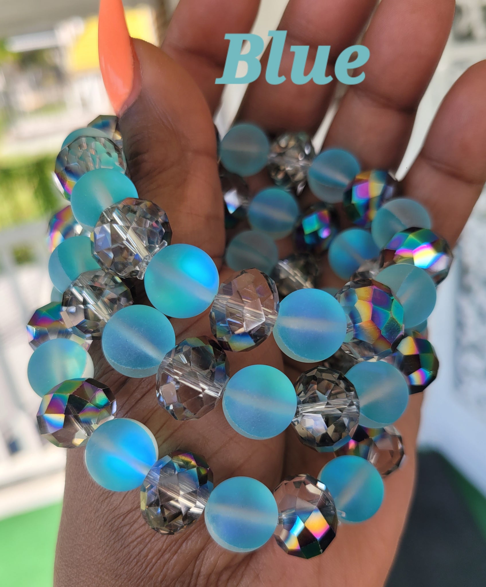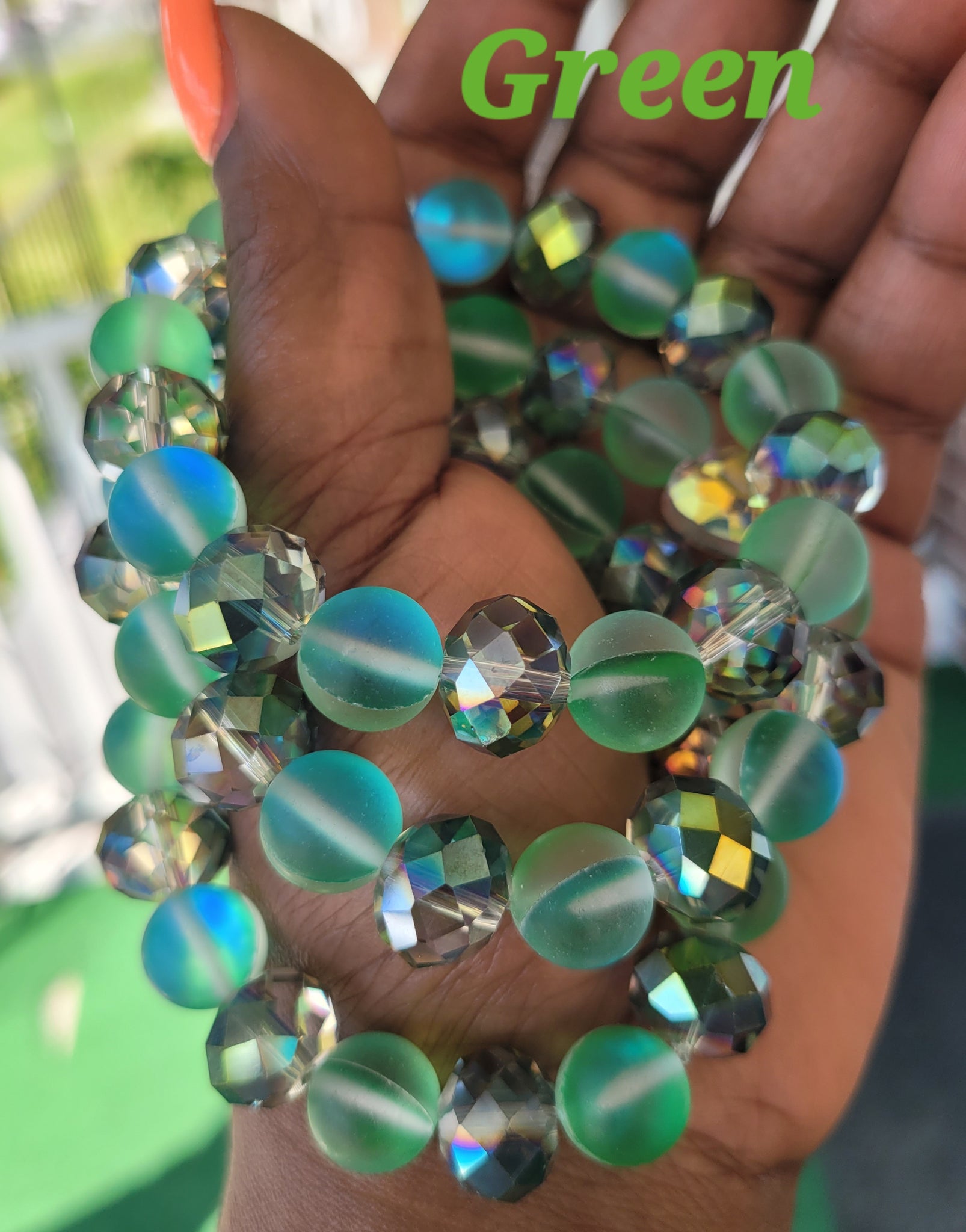 These Stacks Of 3 Are Made With 12mm Faux Opal & Crystal Beads. Each Bracelet Fits Wrist Size 7.5"-8" Wrist.