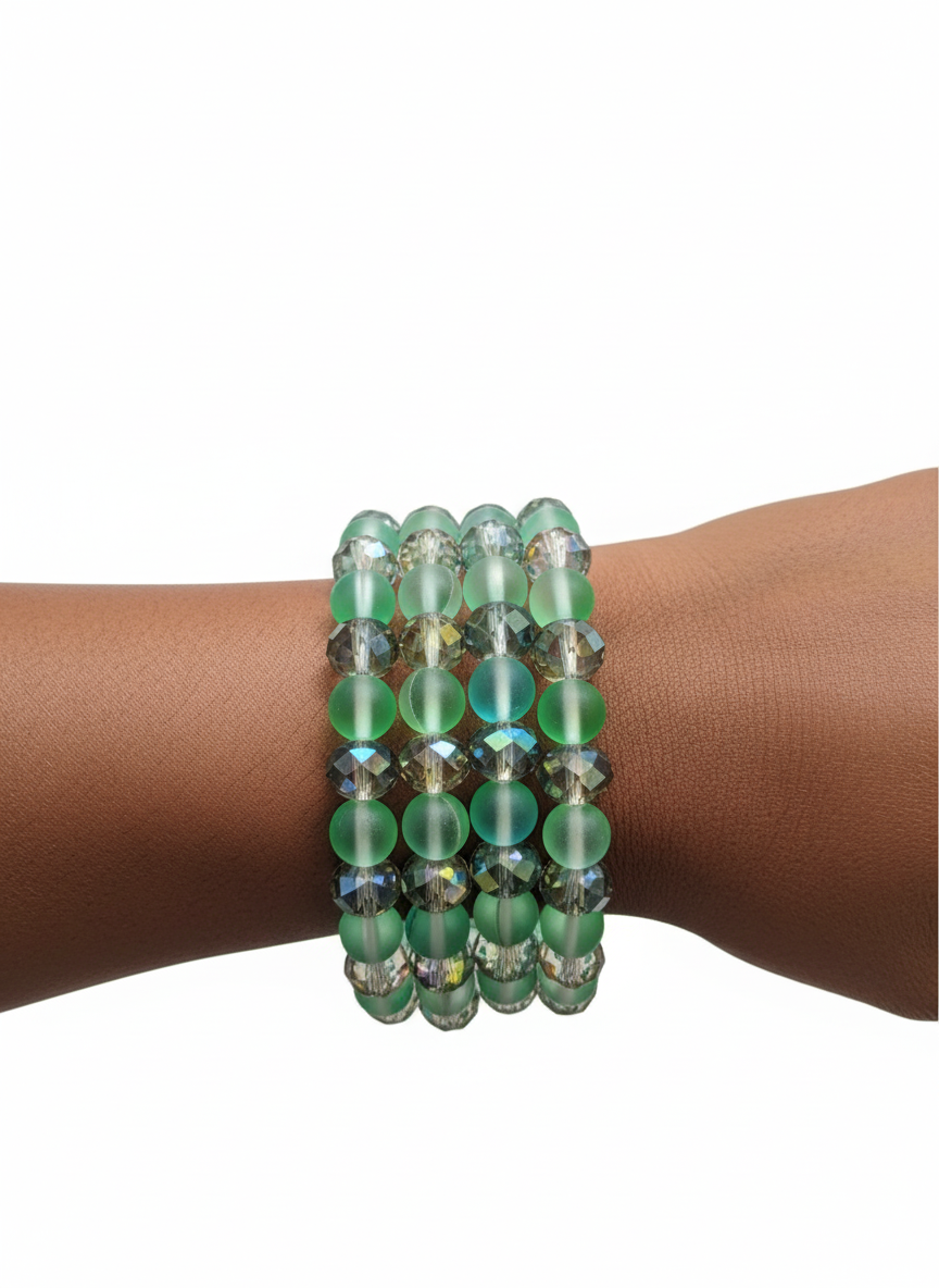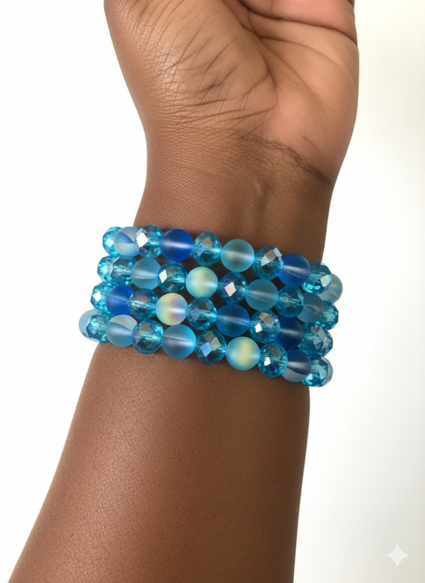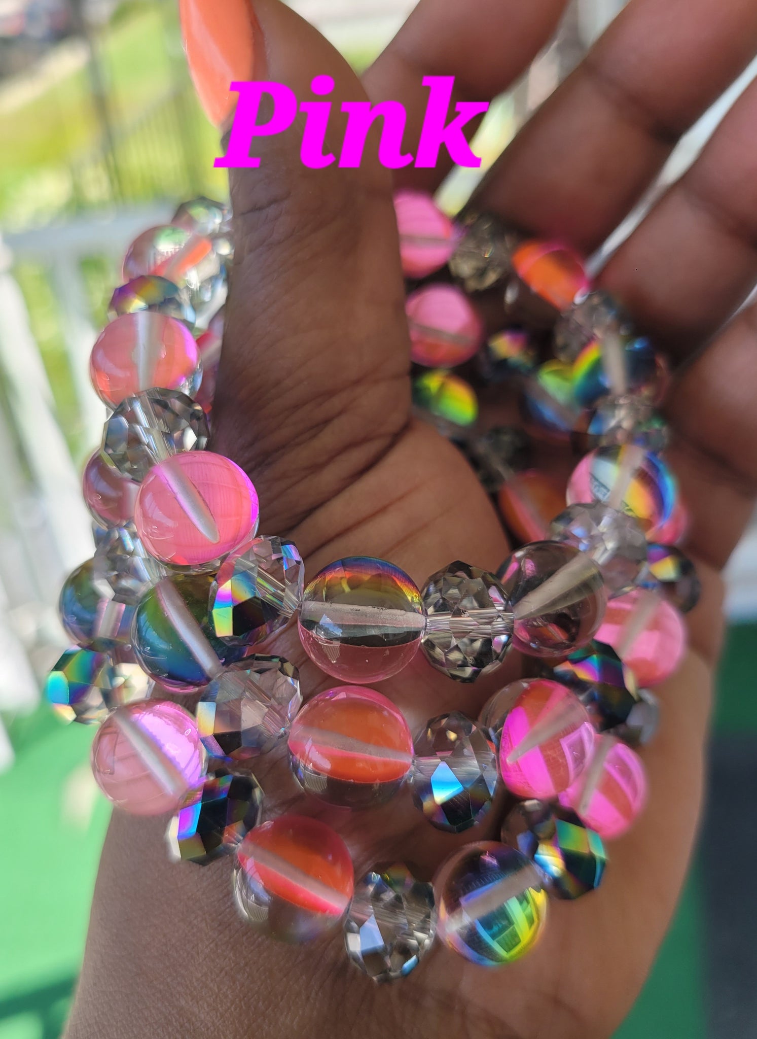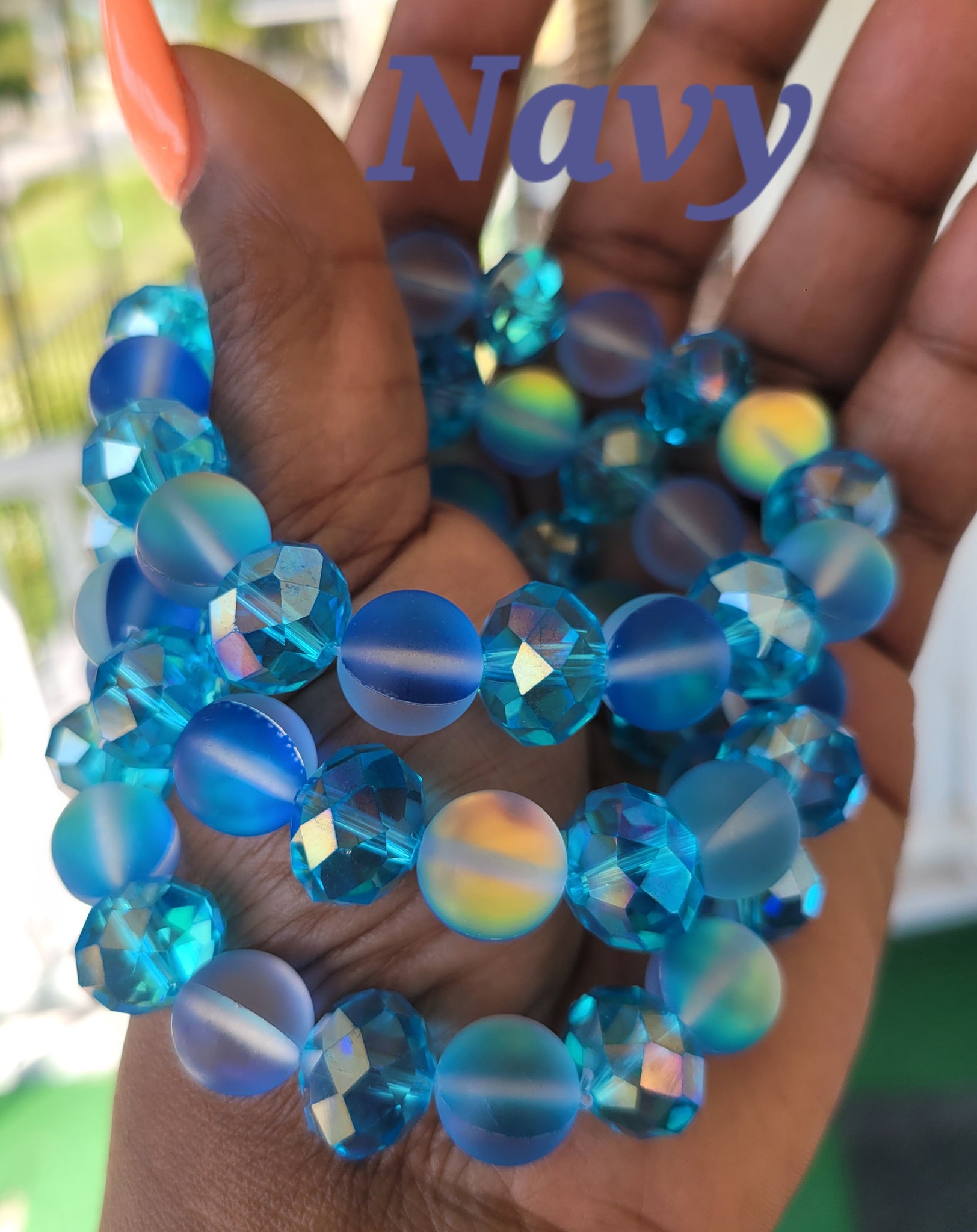 These Stacks Of 3 Are Made With 12mm Faux Opal & Crystal Beads. Each Bracelet Fits Wrist Size 7.5"-8" Wrist.